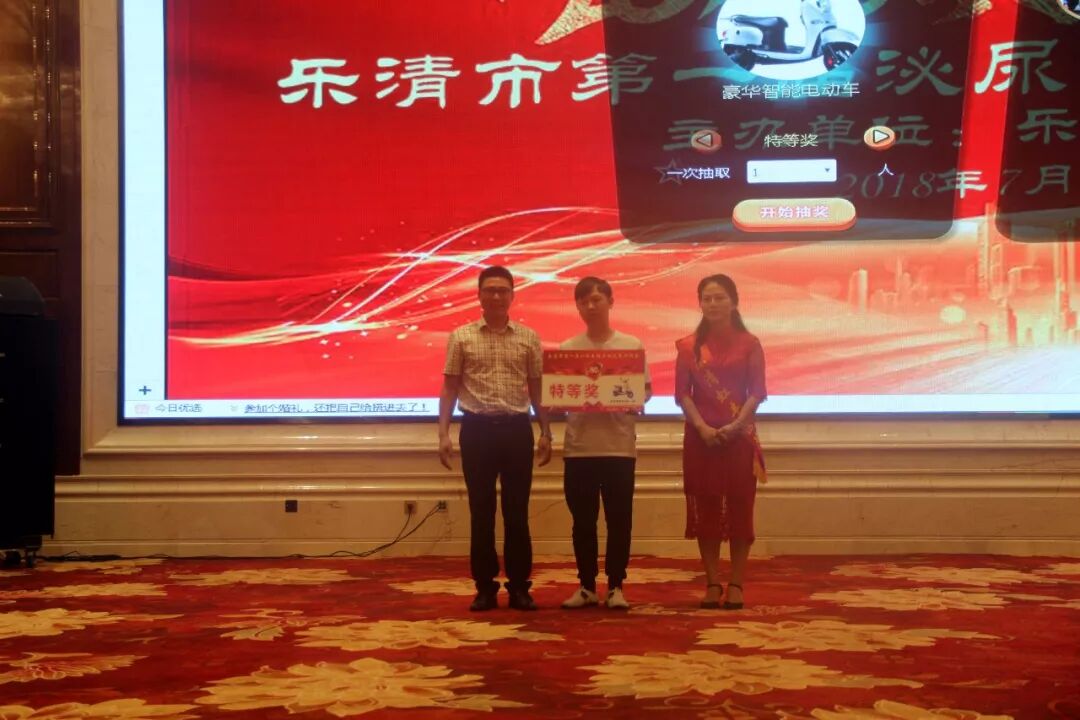 课后,主持人安排了抽奖环节,以滚动大屏幕上参会人员微信头像的形式抽取了多个奖项,奖品有豪华电动车、智能双门冰箱等。